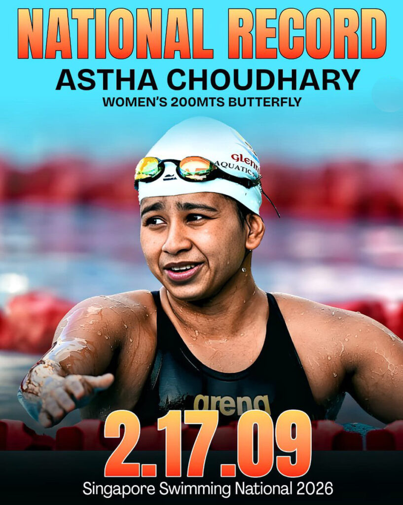 Astha Choudhury Smashes Best Indian Time in Women’s 200m Butterfly SINGAPORE — Indian swimming sensation Astha Choudhury has etched her name into the history books once again, setting a new Best Indian Time in the Women’s 200m Butterfly. Competing at the Singapore National Swimming Championships, Choudhury clocked a blistering 2:17.09, effectively shaving over a second […]
